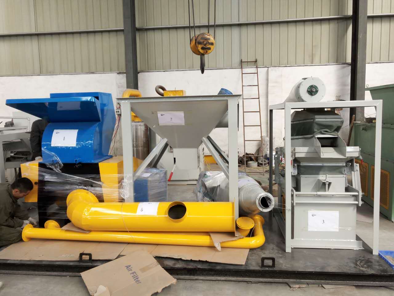 此外,我們還配備有兩臺(tái)振動(dòng)篩,可以對(duì)加工后的原料進(jìn)一步篩分,提高原料純凈度。(有些原料中混有黃銅,經(jīng)過(guò)氣流分選機(jī)加工后,可以把塑料和銅/黃銅分選出來(lái),再經(jīng)過(guò)出銅端振動(dòng)篩篩分,可以把黃銅和銅分離開(kāi)。有些原料中包含有細(xì)小的銅線(xiàn),這些銅線(xiàn)在氣流分選機(jī)中,高壓氣流的作用下,一部分混在塑料顆粒中,再經(jīng)過(guò)塑料端振動(dòng)篩篩分,可以把這部分銅粒進(jìn)行回收。)
